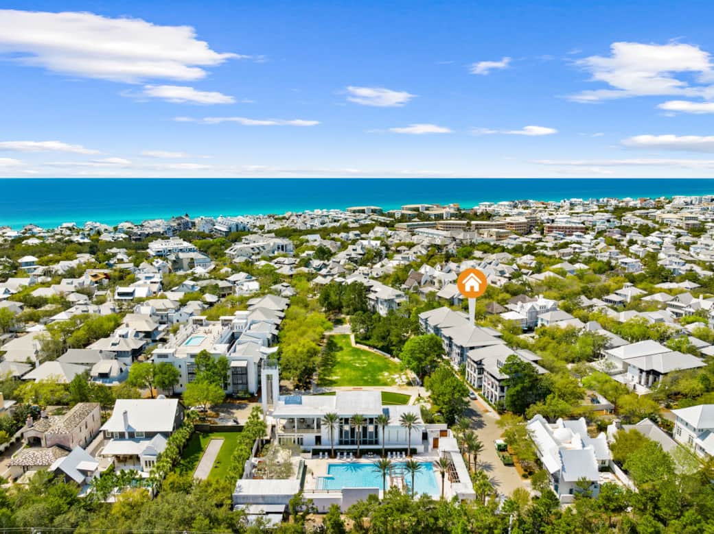 The Rosemary Promenade Flat is adjacent to the St. Augustine Park in Rosemary Beach. Parking can be found in the designated parking lot behind the Flat or on the street just in front of the flat. If parking in the back lot, elevator access can be used to the second floor. The door is 27C. There are two entrances to the Rosemary Promenade Flat.